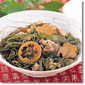 | 海に囲まれた日本では昔からたくさんの種類の海藻を色々な調理法で食べてきました。海藻類はおいしいだけでなく、ほとんどノンカロリー。しかもカルシウムや鉄分、ミネラル、食物繊維も豊富で成人病予備軍の人は特に仲よくしたい食品です。 |