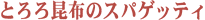 | 切り昆布の煮物 | とろろ昆布のスパゲッティ | わかめと卵の炒めもの | 青のりのとろろ和え | ひじきとツナのサラダ | ||||||