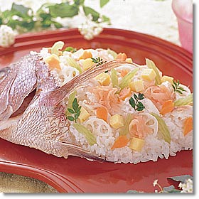 鯛を炊き込まずに焼いて加えると簡単です。 |