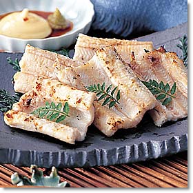 | 天ぷらやおすしに、江戸前の料理に欠かせないあなご。穴にもぐるのが大好きで、自分で掘った穴から頭だけを数センチほどのぞかせているので「穴子」と呼ばれるようになったとか。うなぎと同様、脂肪分とビタミンAが豊富で、夏バテ防止にも最適です。 |