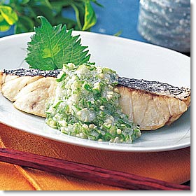 | 初夏から夏にかけてが旬のスズキは出世魚としても知られています。1年魚はセイゴ、2年魚はフッコ、3年以上はスズキと呼ばれます。スズキの名の由来は、魚体の美しさと美味な魚の意味で〈清しい〉から付けられたとか。白身魚ですが脂肪分も多く、ビタミンA、Dが豊富です。 |