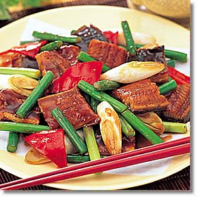 うなぎがパサつくようだったら、白ワインをふりかけて温めるとよい。 |