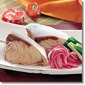 | 魚へんに師走の師と書いて、ぶり。これは12月にぶりが一番おいしい時期だからと言いますが、それには科学的根拠があります。この時期、ぶりにはヒスチジンというアミノ酸が増えるそうで、これは、かつおぶしにも多いうまみ成分なのです。ぶりは青背の魚の中でもトップクラスの栄養価。善玉コレステロールを作り出すEPA(エイコサペンタエン酸)、DHA(ドコサヘキサエン酸)が多く、ビタミンB1、B2、ナイアシンも豊富です。 |
