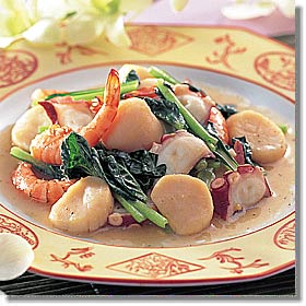 帆立貝にえび、たこを加えたごちそう料理。 材料(4人前) |