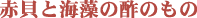 | あさりの老酒蒸し | 帆立貝のソテー クリームソース | 赤貝と海藻の酢のもの | 帆立貝の海鮮炒め | あさりのチャウダー | ||||||