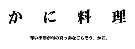 | かにの種類は色々ありますが、主には北海道でとれる「たらばがに」「花咲がに」「毛がに」と本州でとれる「ずわいがに」「わたりがに」などです。ずわいがには土地によって名前がまちまちで、北陸地方では「越前がに」、山陰地方では「松葉がに」と呼ばれています。冷凍のものは一年中出回っていますが、味がよいのはやはり秋から冬にかけてです。